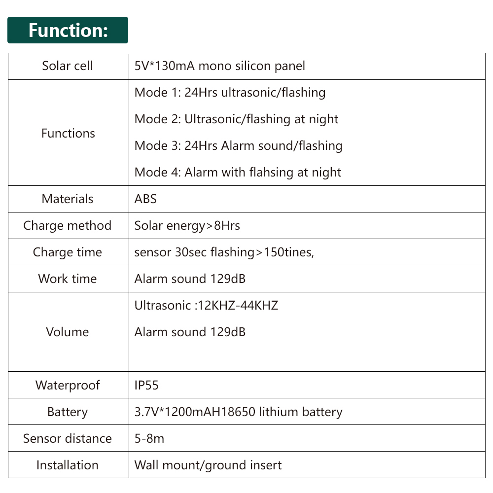 Mode 1# 24hrs ultrasonic/flashing