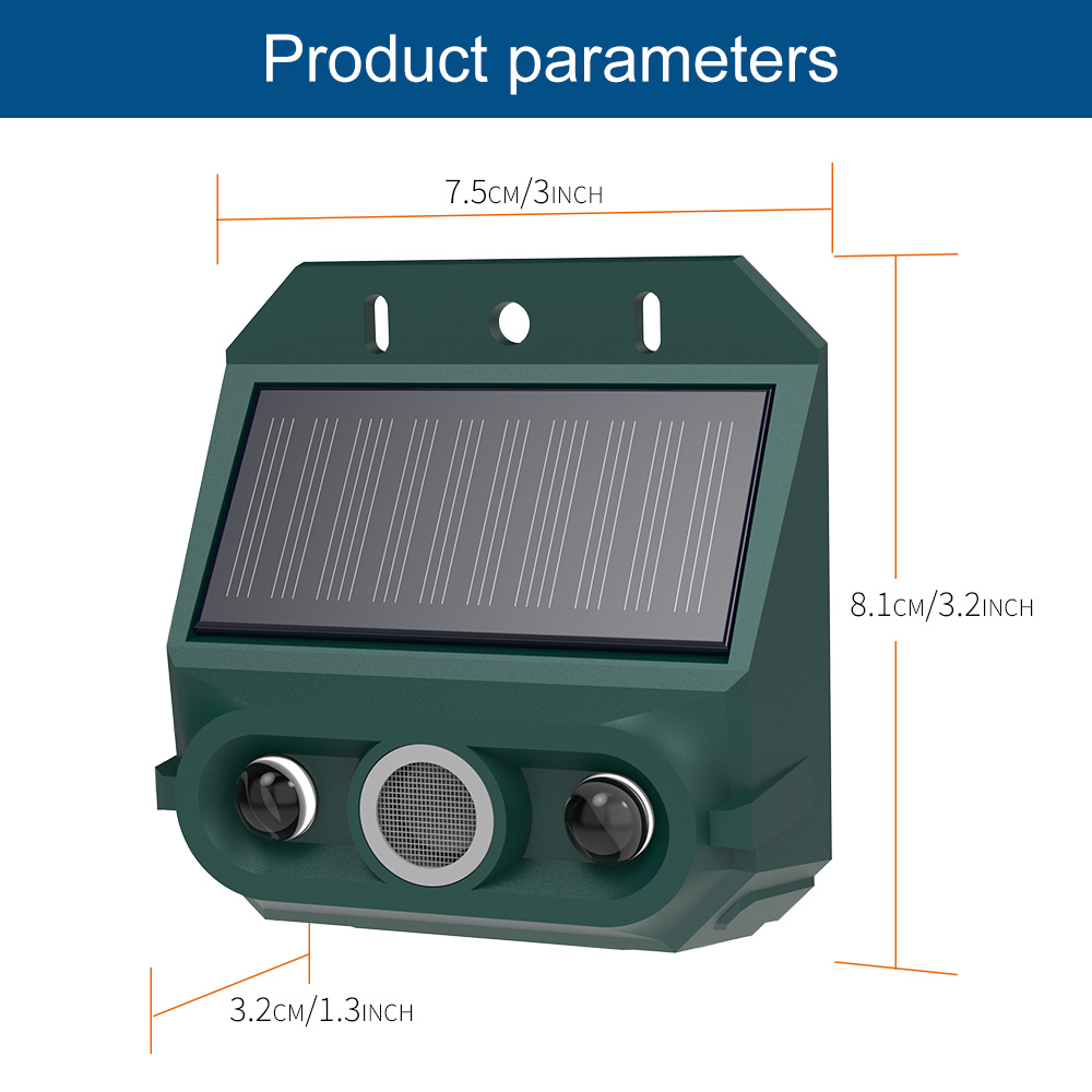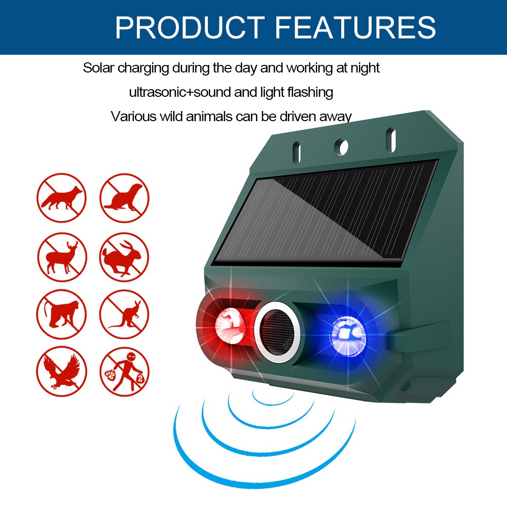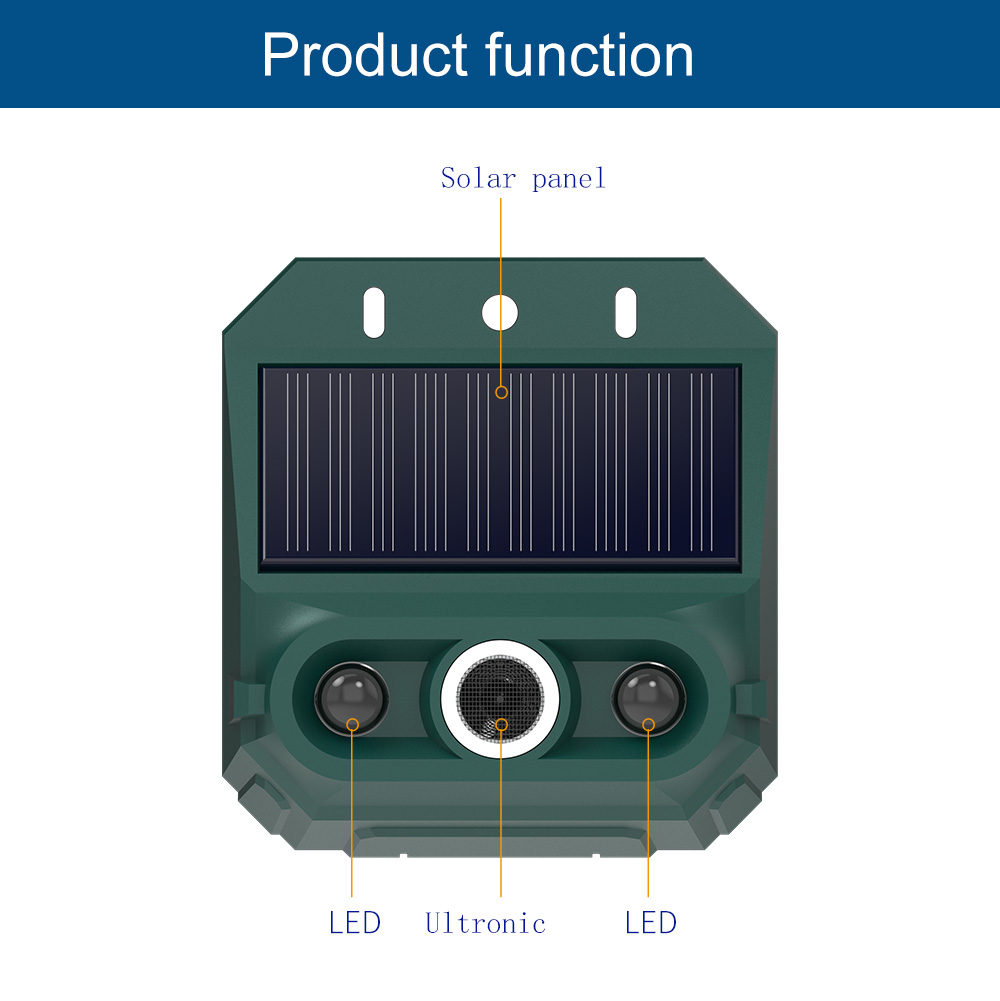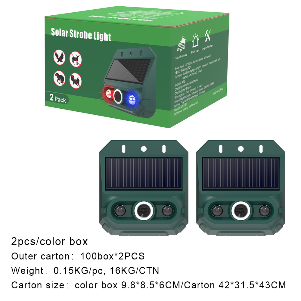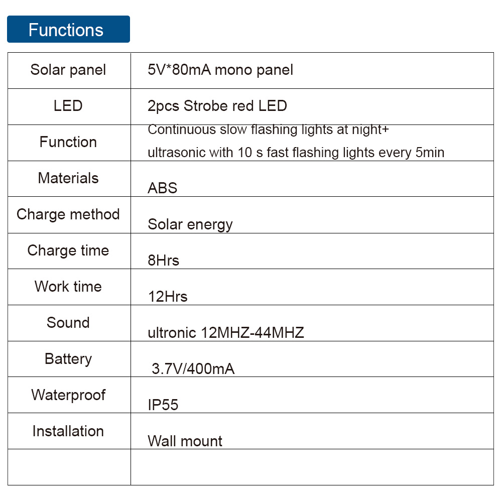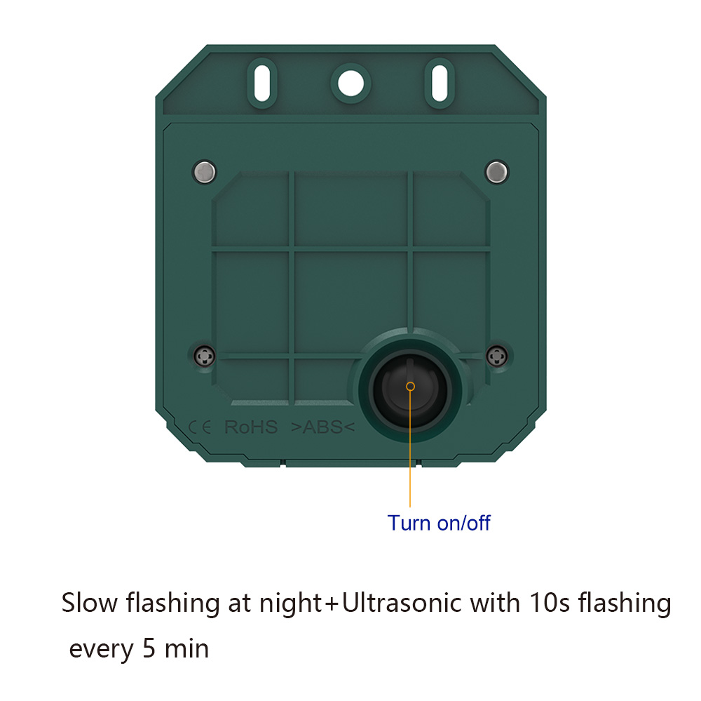 Function: Slow flashing every 5 minutes and fast flashing with ultrasonic for 10 seconds at night