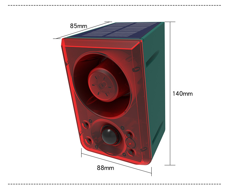 High-power loud speaker,volume adjustable 3 working modes Max 20 seconds recording repeatedly Solar engrgr / DC charge Keep away animals,thieves,and home security