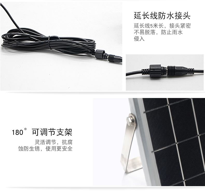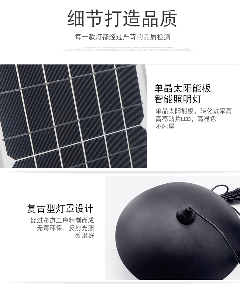 材质:太阳能板铝框,灯罩铝,灯泡外壳ABS