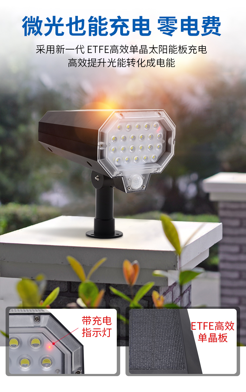 太阳能插地草坪灯旋转壁灯LED户外人体感应庭院灯
