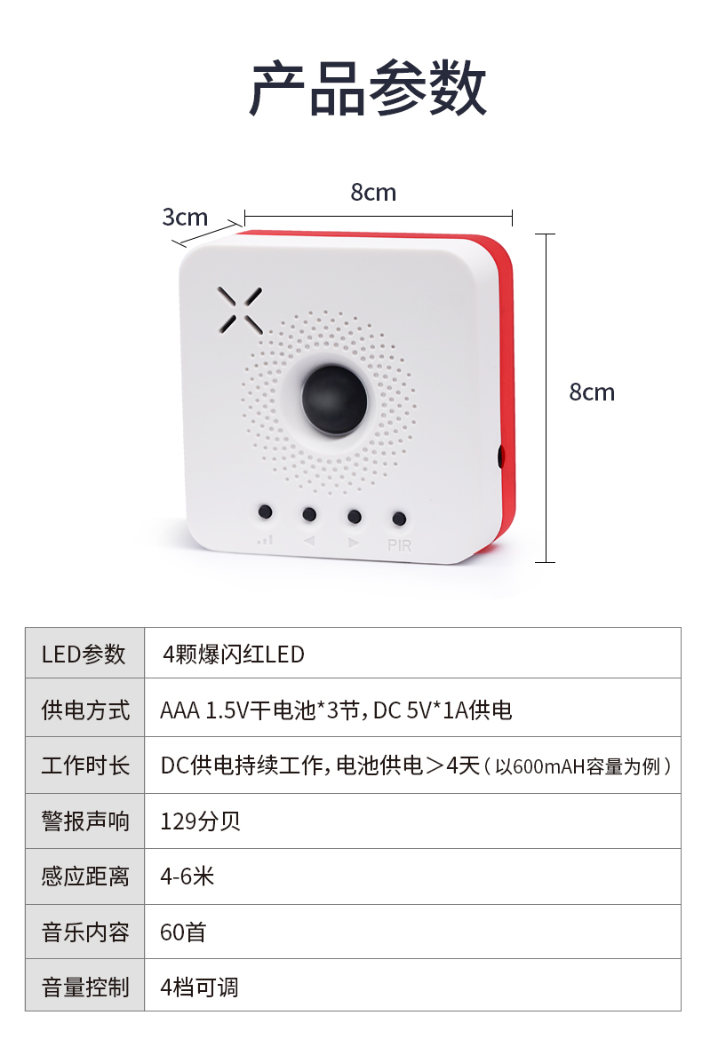 7.小体积携带方便,家庭酒店客房门窗防入侵声光报警。