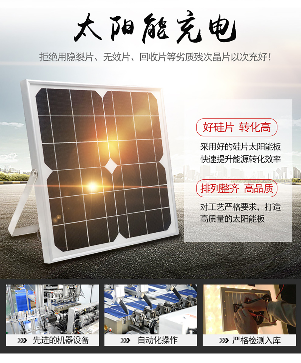 太阳能板:6V*10W多晶硅太阳能板,充电高转化率