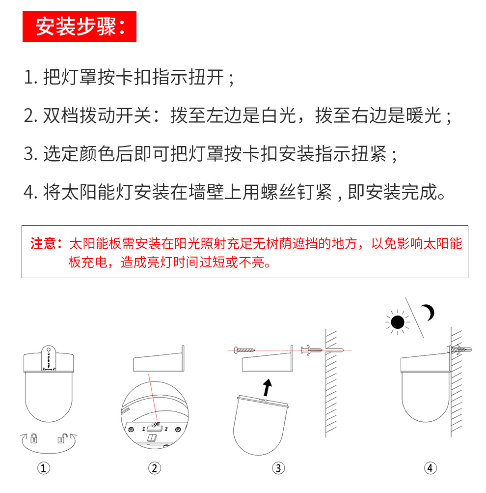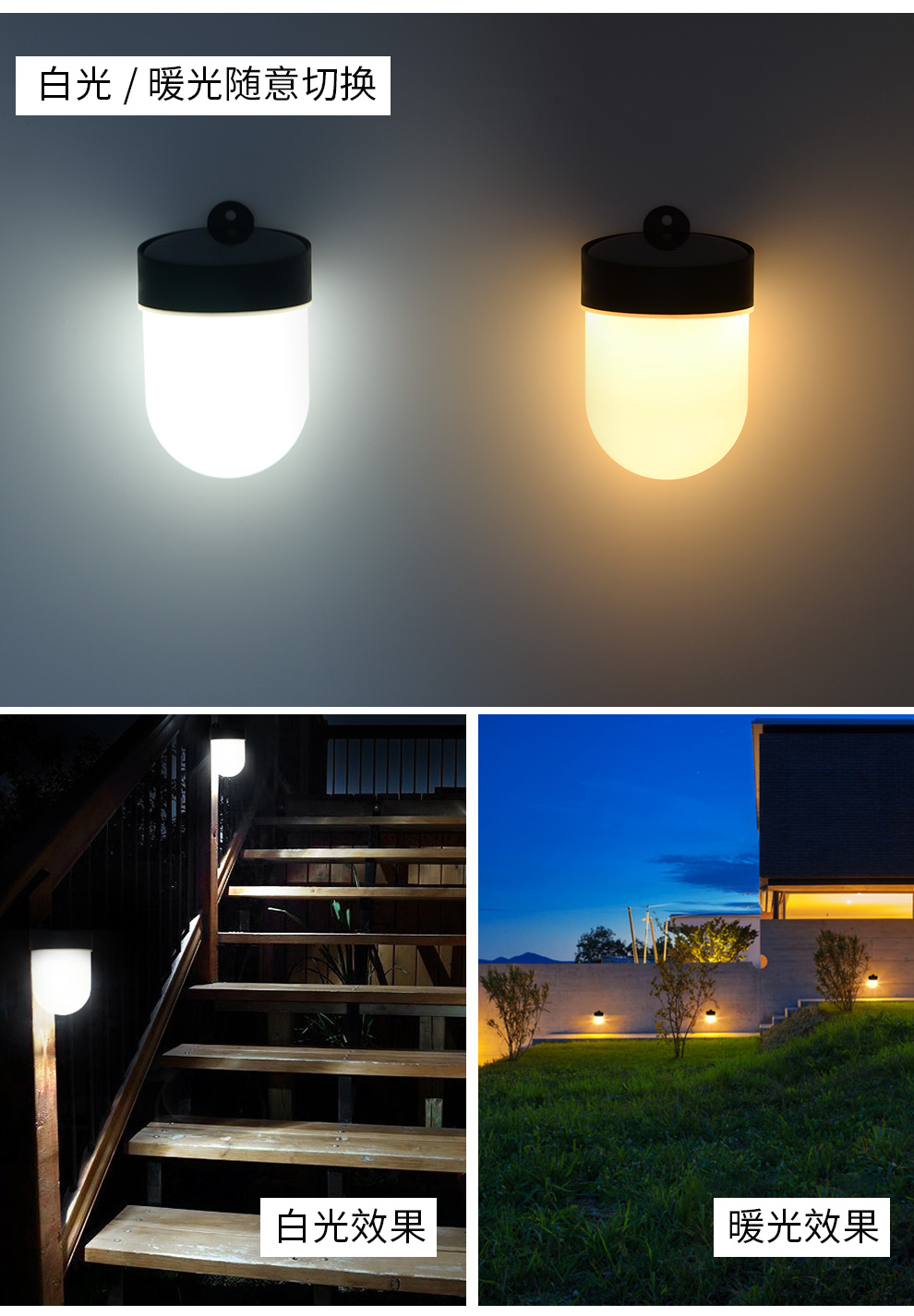 太阳能花园壁灯一灯双色