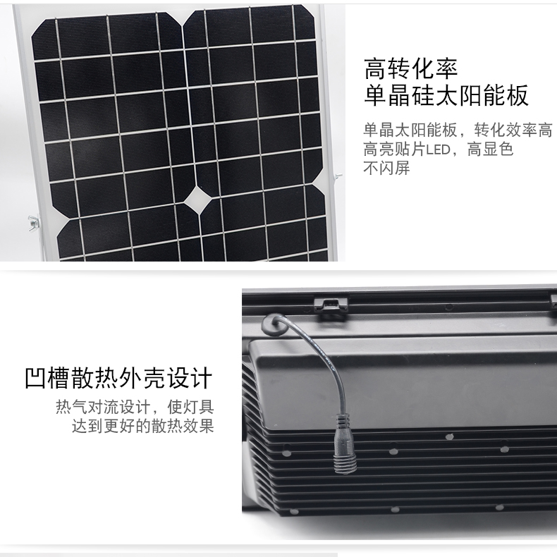 太阳能板:5V*15W单晶硅太阳能板LED:160颗5730贴片LED,光照范围>100m²电池:3.2V*16000mA材质:铝合金充电方式:太阳能充电充电时长:6-8小时光照时长:亮灯时间可调12-30小时线长:5米 0.5平方全铜芯 环保耐寒皮套防水等级:IP66功能:遥控+光控+8档定时+3档调节亮度+记忆功能+智能3天亮灯模式