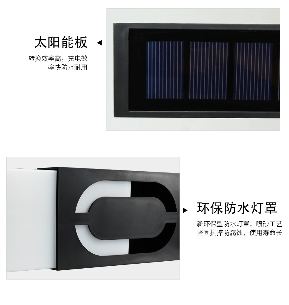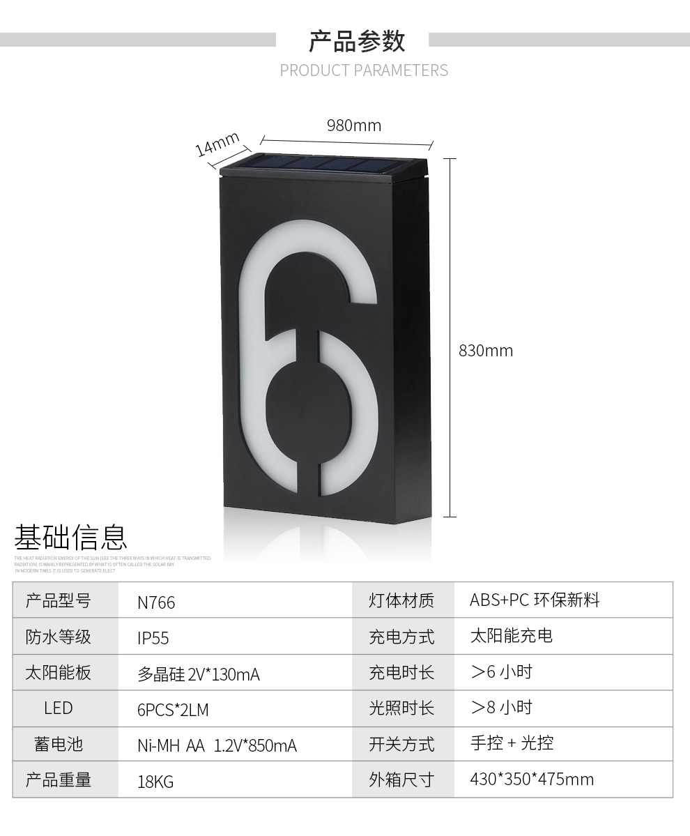认证: CE,ROHS太阳能板: 多晶硅2V*130mA蓄电池: "Ni-MH AA 1.2V/850mALED: 6PCS*2LM开关方式: 手控+光控灯体材质: ABS+PC环保全新料防水等级: IP55充电方式: 太阳能充电充电时长: 〉6小时(充电时间受不同季节光照强度影响)光照时长: >8小时