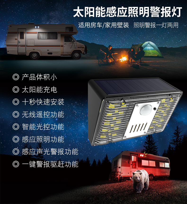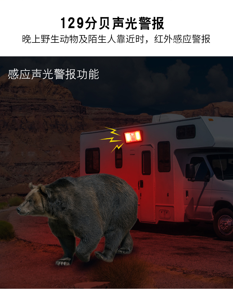 5.感应声光警报功能一键警报驱赶功能