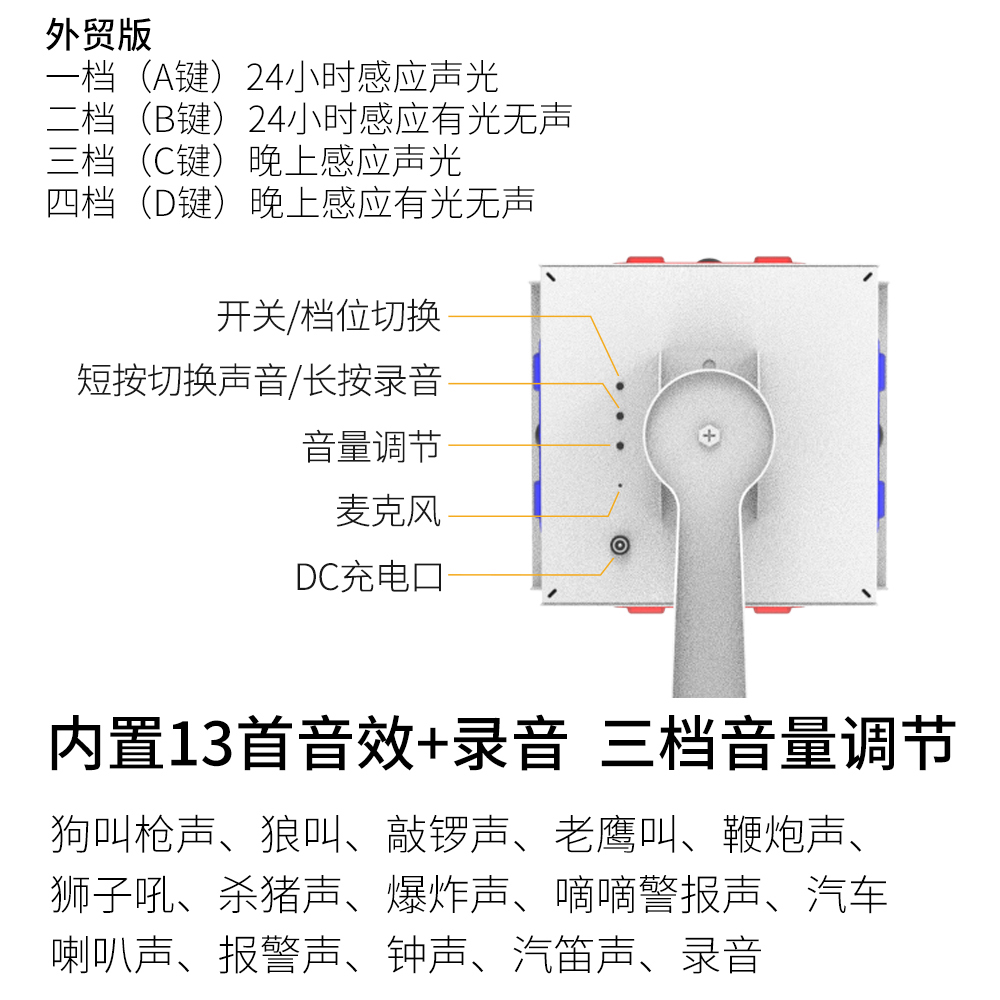 晚上感应声光报警,四档(D键)晚上感应有光无声
