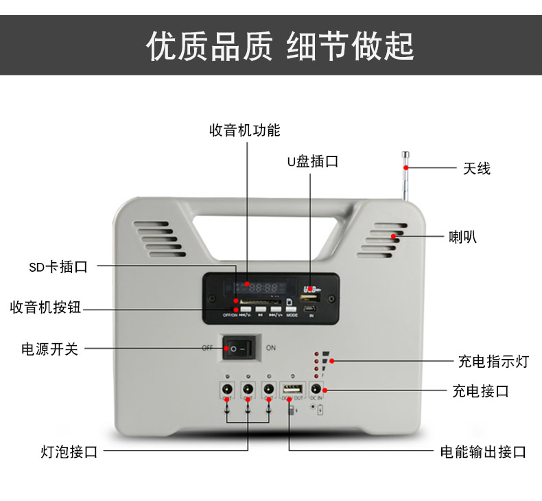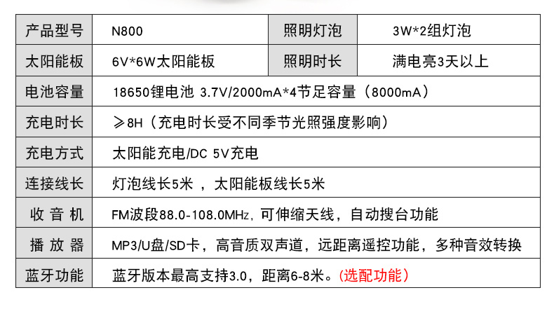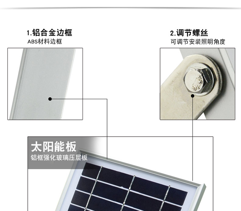 材质: 主机外壳环保台湾ABS新料,太阳能板铝框强化玻璃压层