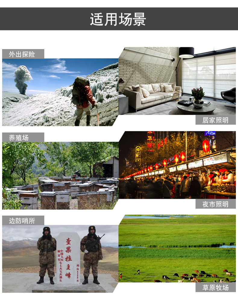 防水等级: 太阳能板IP65,其他组件不防水