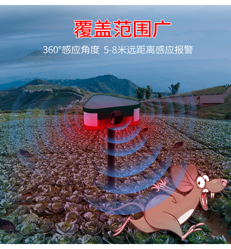 3. 5-8米的感应距离,360°感应角度,3个129分贝的高音