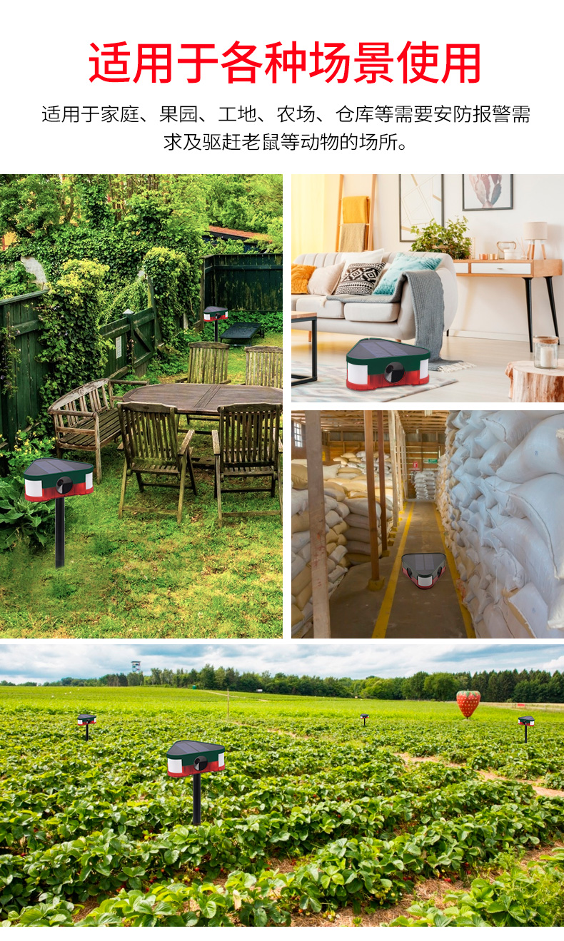 2. 适用于家庭、果园、工地、农场、仓库等需要安防报警需