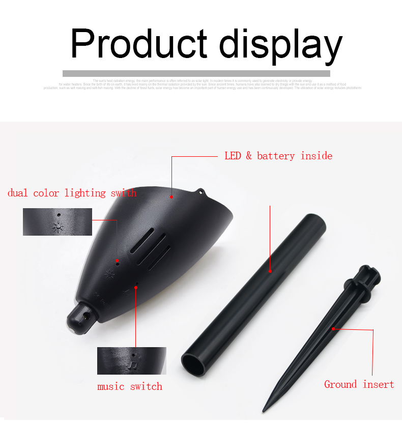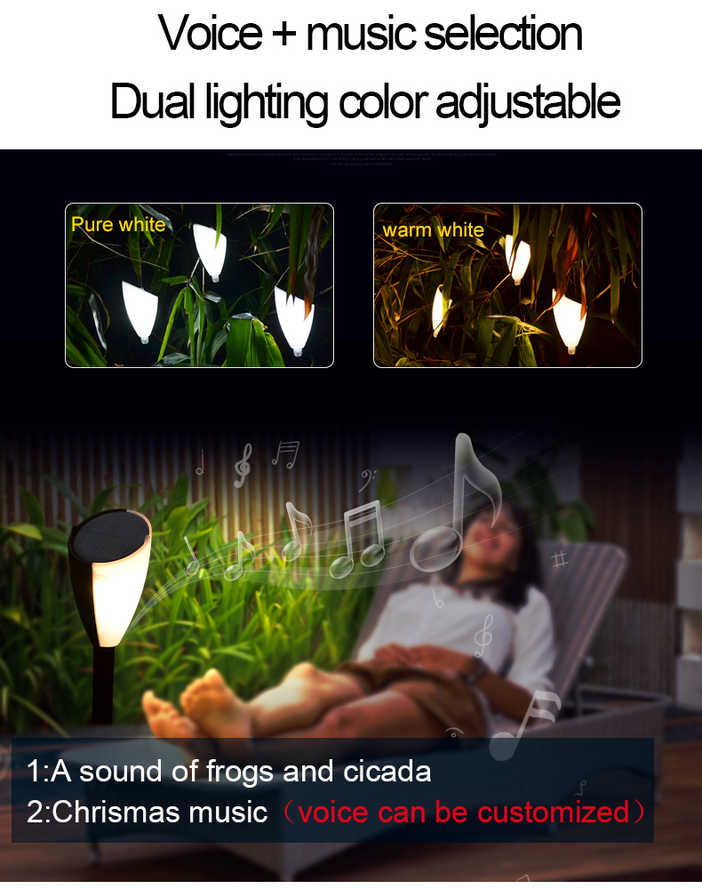 Working time:dual lighting>12Hrs, voices or music >12Hrs, lighting+music> 6Hrs