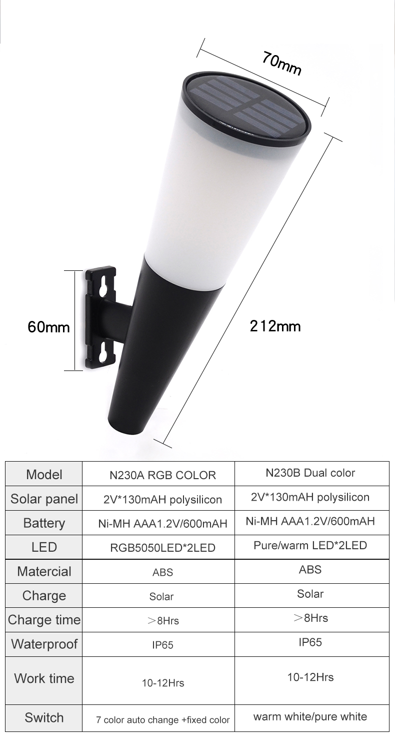 Light body material: ABS IP65 waterproof