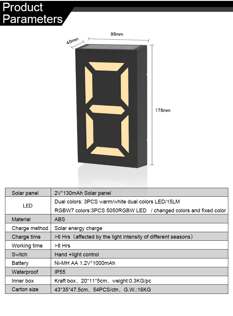 DIY the number you wantWhite / Warm light color modeColor light mode ( Auto color changing/Static color )