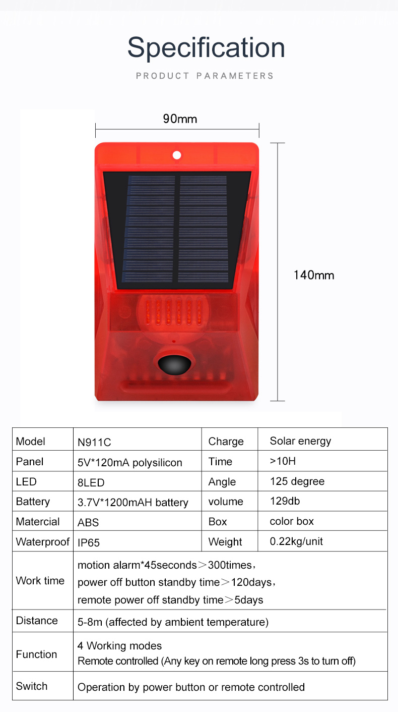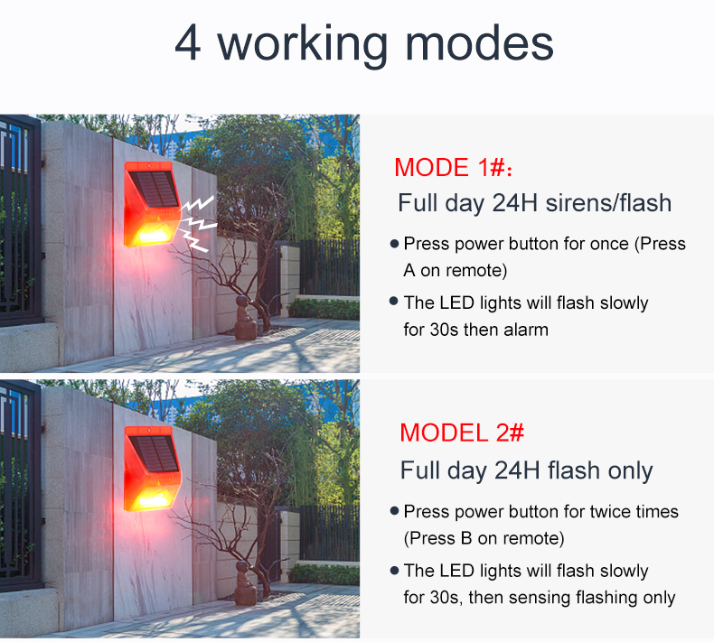 Solar security alarm with remote control solar motion security light for outdoor use
