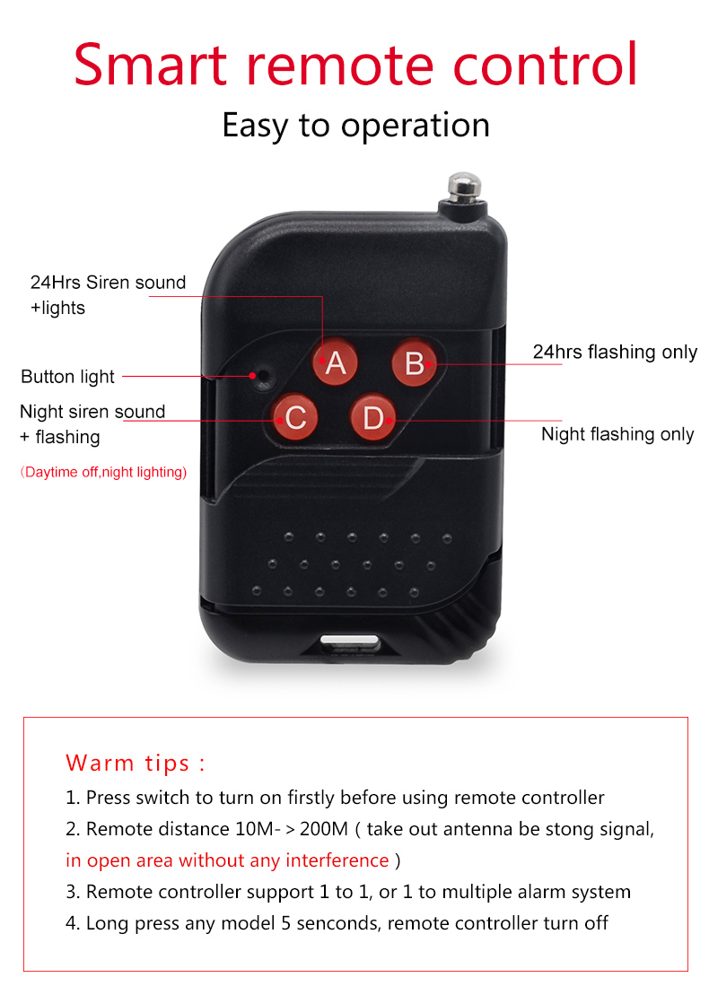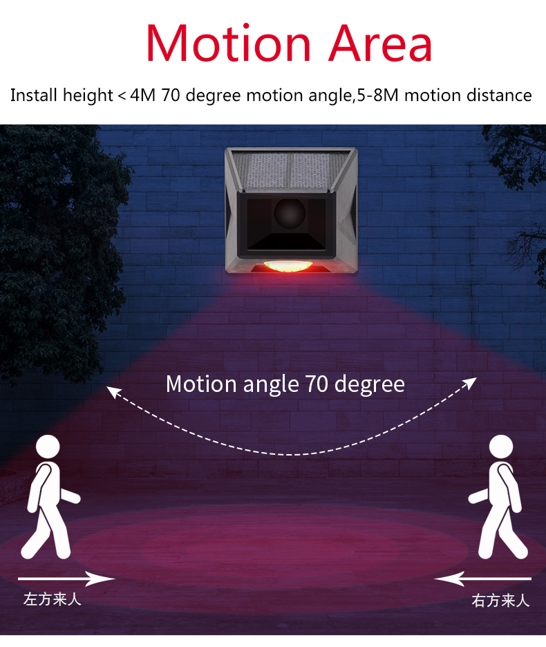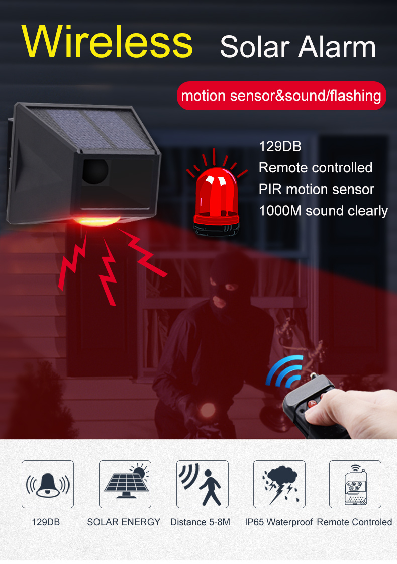 5-8 meters long distance induction, 129 dB high - pitched alarm and alarm lights flash