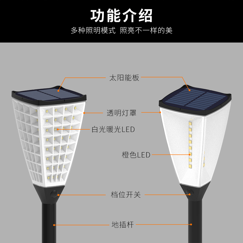 功能:双色款 ( 一档白光渐变/二档暖光渐变/三档双色循环渐变)