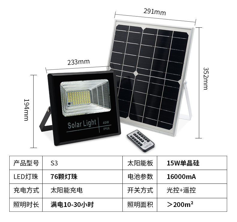 S3 太阳能投光灯