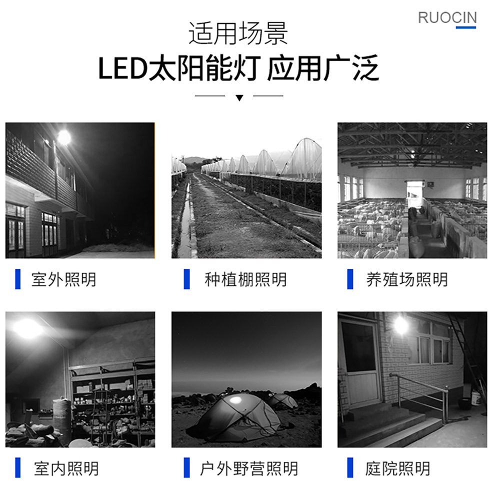 380C:6V*6W多晶硅太阳能板,36颗5730LED,光照时长12-40小时,配备3.7V*5200mAH足容量锂电池